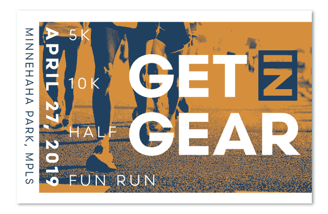 I reached out to Get in Gear, a Minneapolis running event that takes place in each April. We partnered to create new marketing materials for the 2019 race. The project followed the standard phases of a design project: brainstorming, concepting, revisions, etc. However, I did not inform them of my self imposed creative constraint.