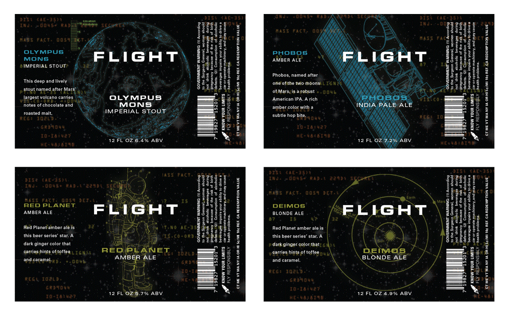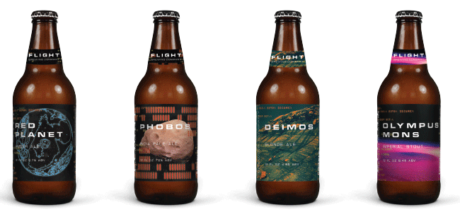 Concept for Flight Brewing Company’s Mars Mission beer sampler.