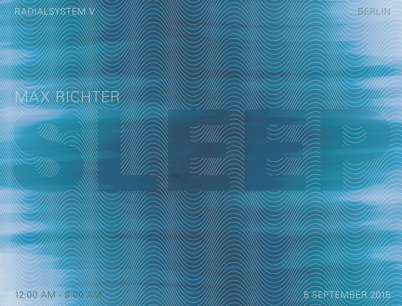 Max Richter's Sleep was released in September of 2015. This 8 hour composition is meant to be listened to while asleep. To mark the release of the composition, Richter held a live performance of the entire piece. Audience members were given beds for the performance and were encouraged to sleep. This is a promotional poster concept for that performance.